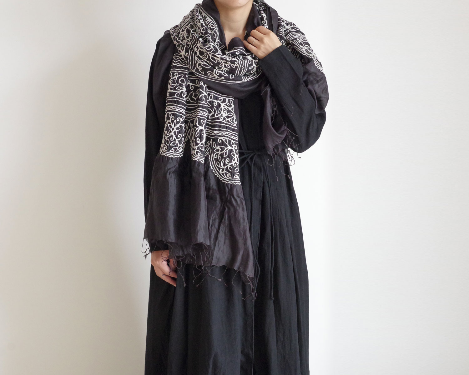 MAKU BIRGIT 刺繍シルクストール (BLACK)